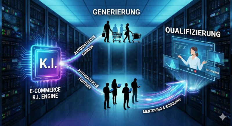 - Unser K.I. System generiert für dich neue Kunden, sowie neue Partner und schult diese automatisch in unserem Shop- und Automatisierungsprozess. Du musst das also nicht machen.